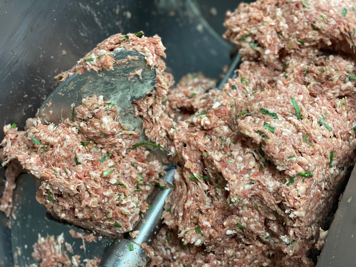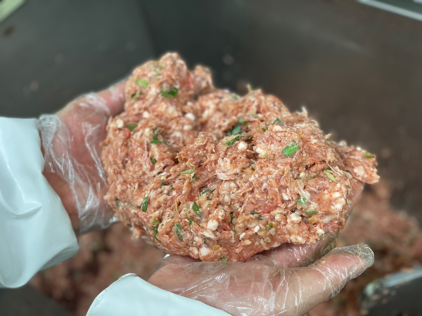 한우(국내산) 70%, 한돈 20%, 다진채소양념[양파(국내산), 부추(국내산), 마늘(중국산), 설탕, 소금]