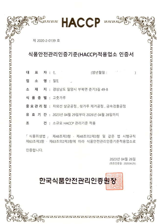 입자 크기는 보통굵기이고, 김장철 고춧가루가 아니라 업소용/가정용 고춧가루입니다