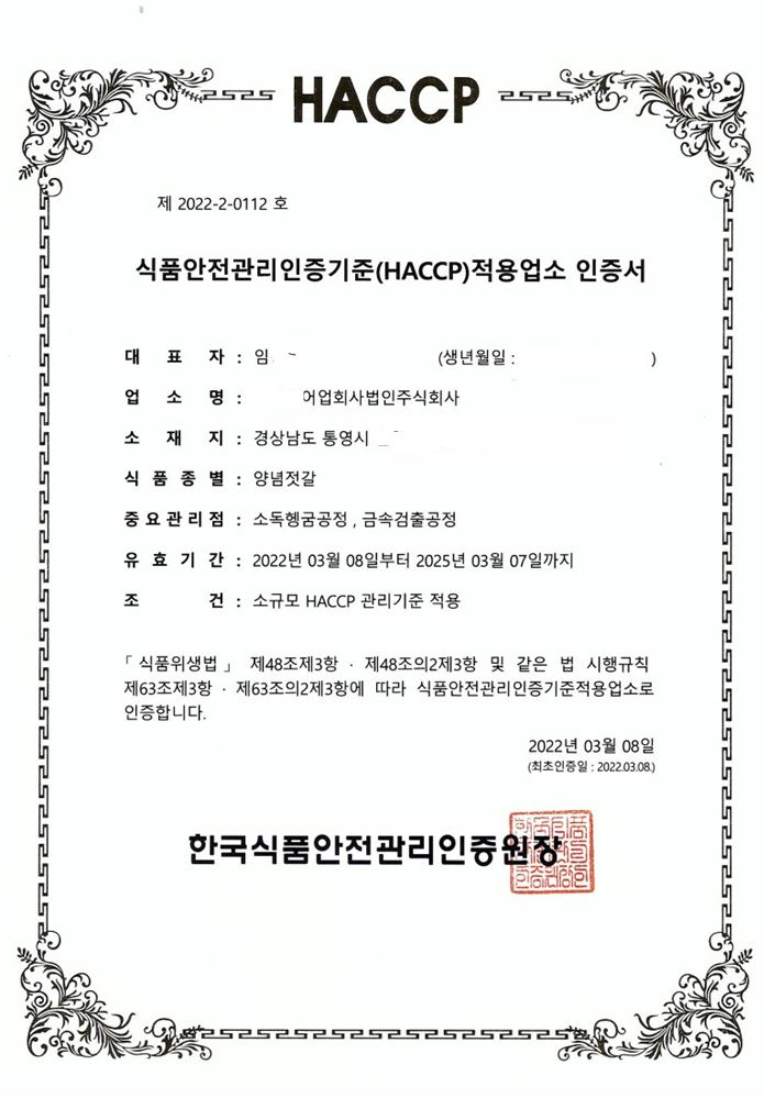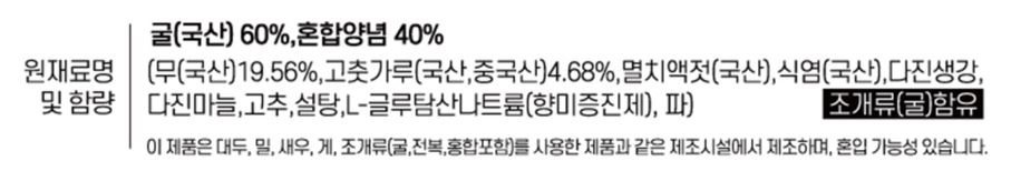 해썹인증 생굴무침입니다