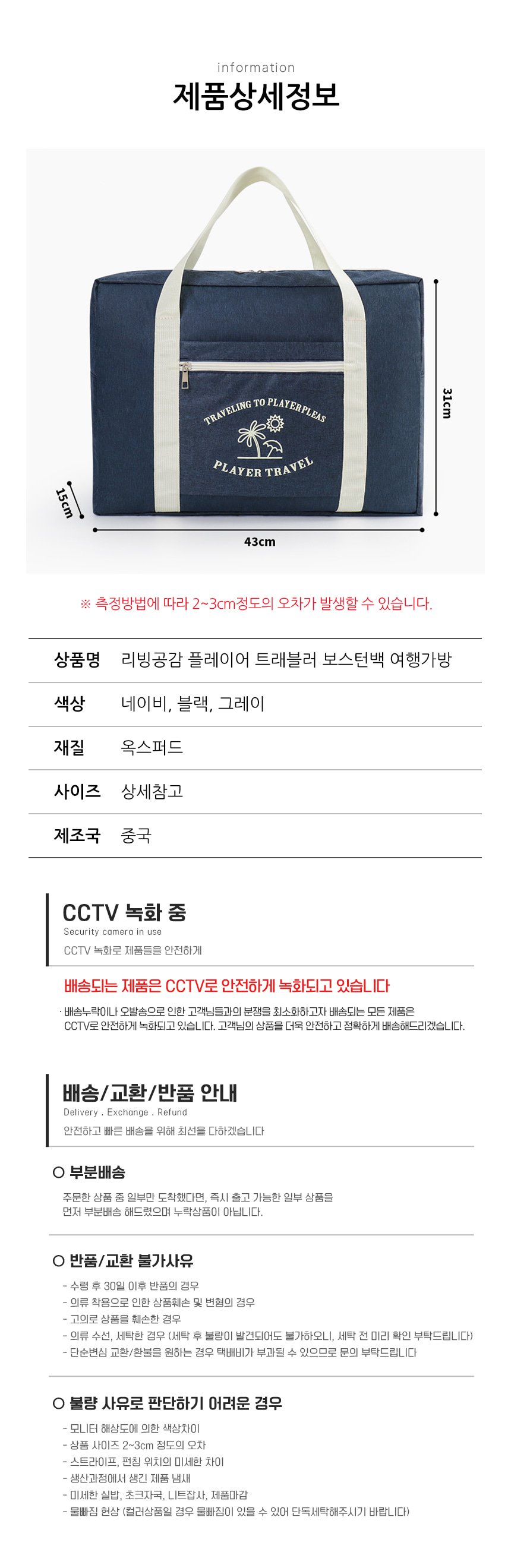 | 소재 | 상품상세정보에 별도 표기 |