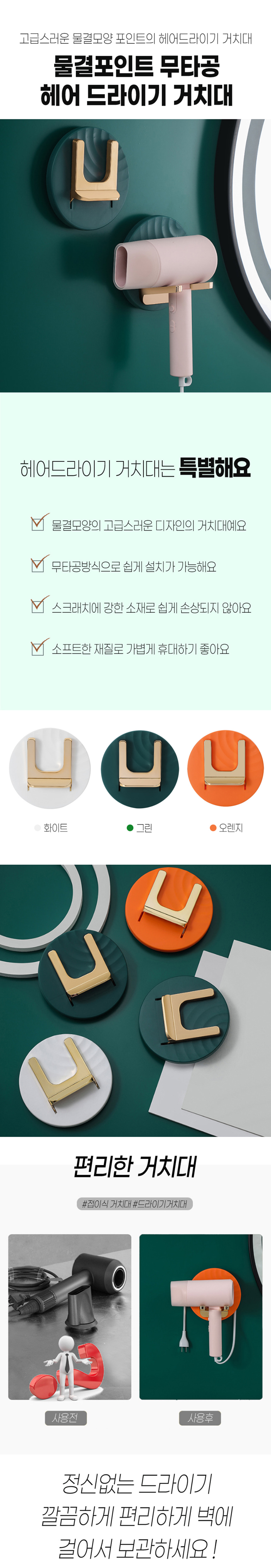물결 무타공 헤어드라이기 거치대