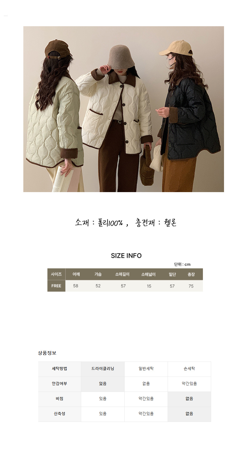 | 세탁방법 및 취급시 주의사항 | 상품 상세정보에 별도 표기 |