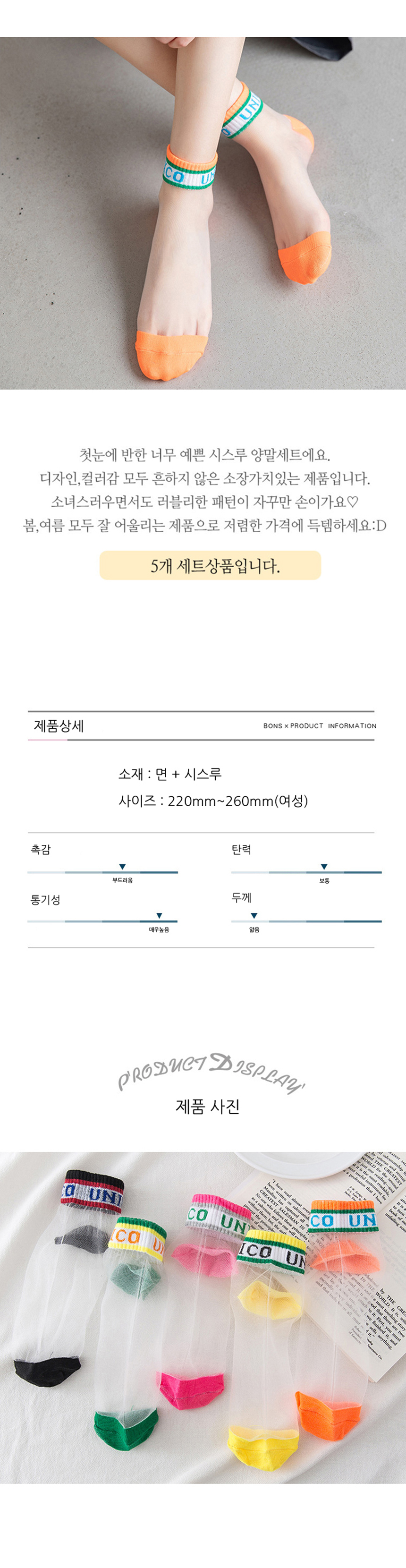 유니크 시스루양말 5개세트