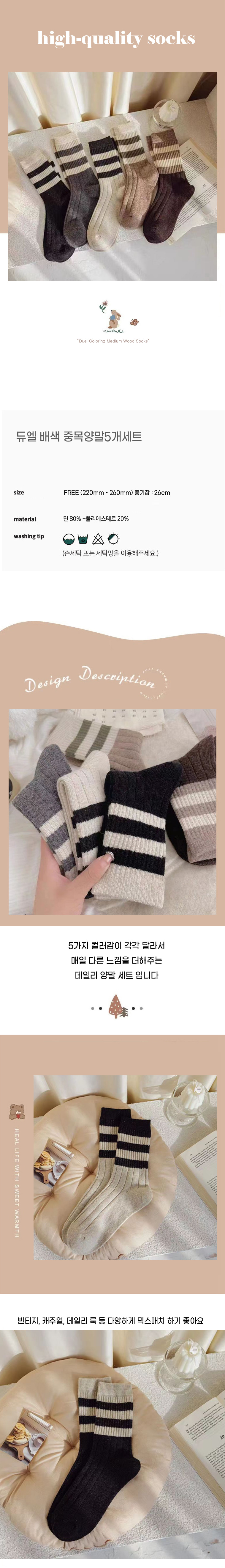 듀엘 배색 중목양말 5개세트