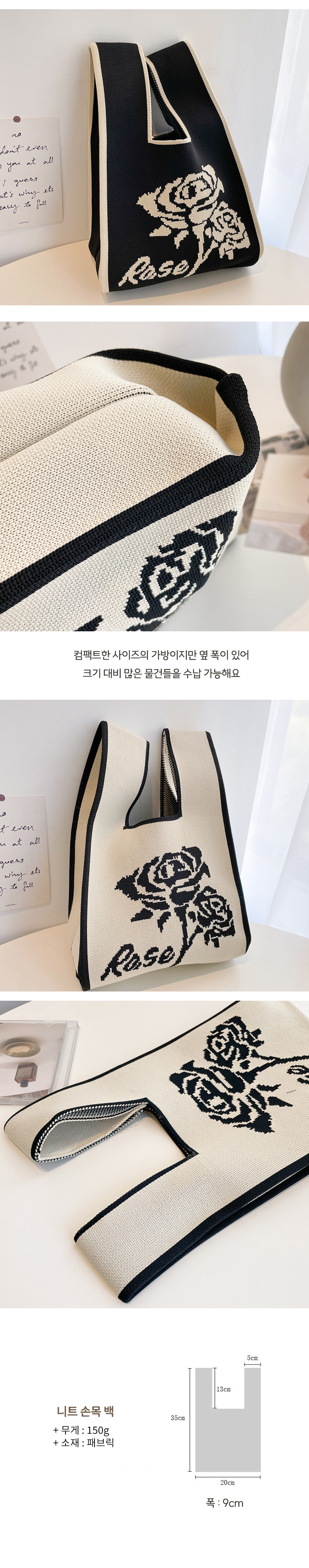 장미 탄탄 미니 니트백