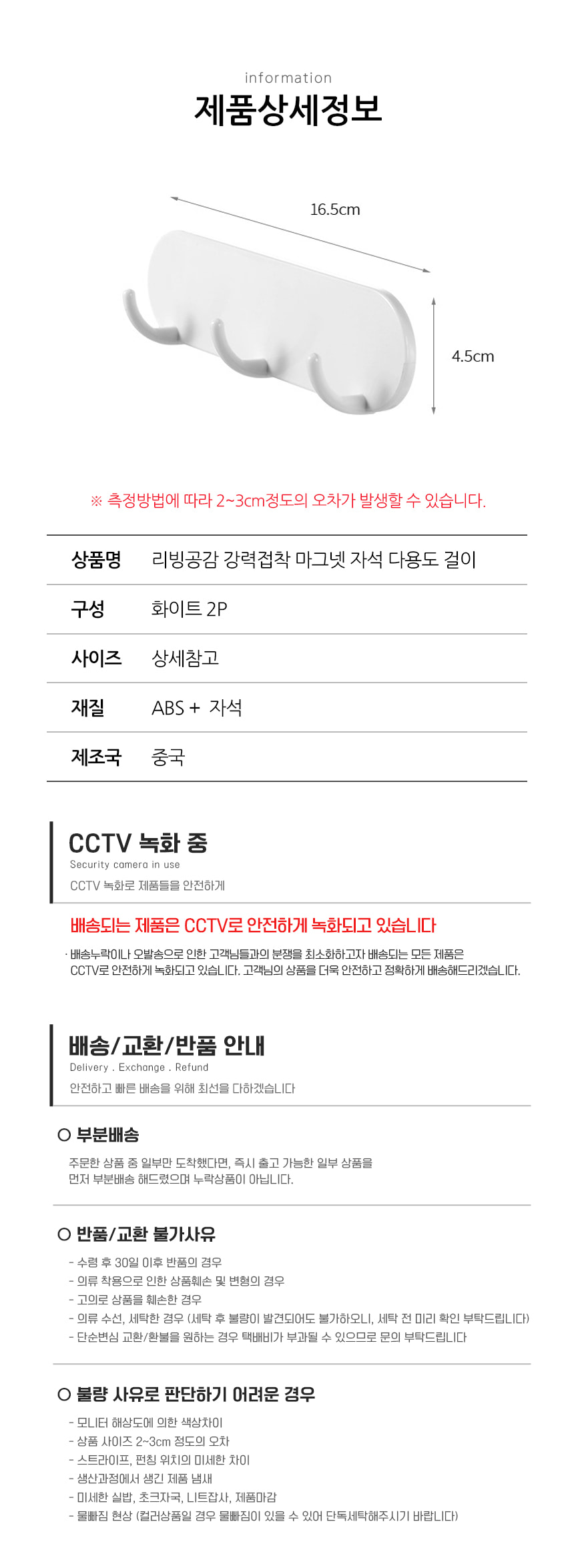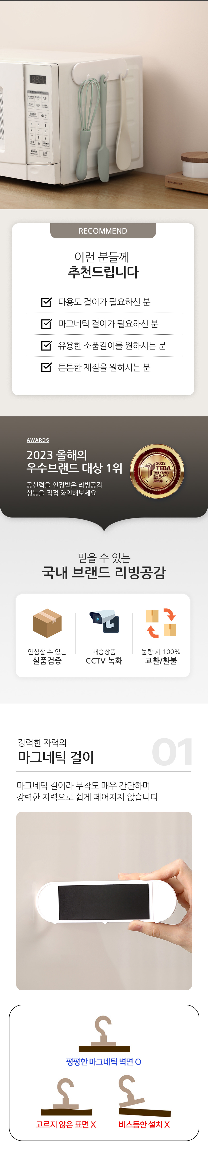 리빙공감 강력접착 마그넷 자석 다용도 걸이