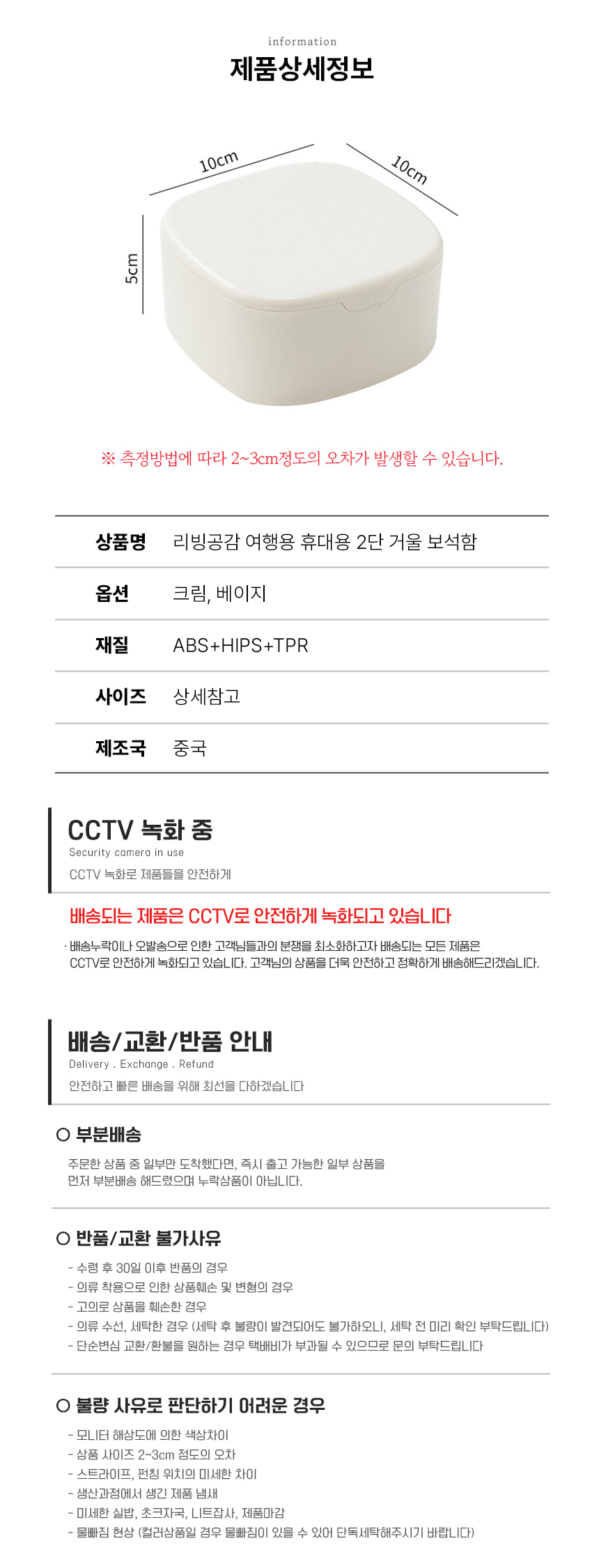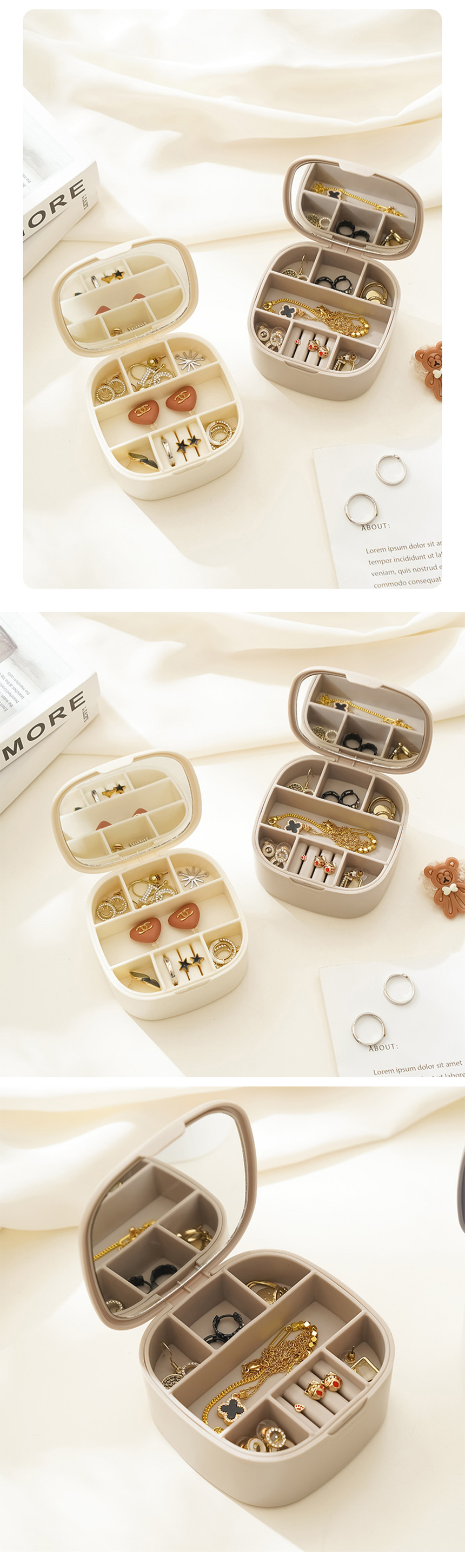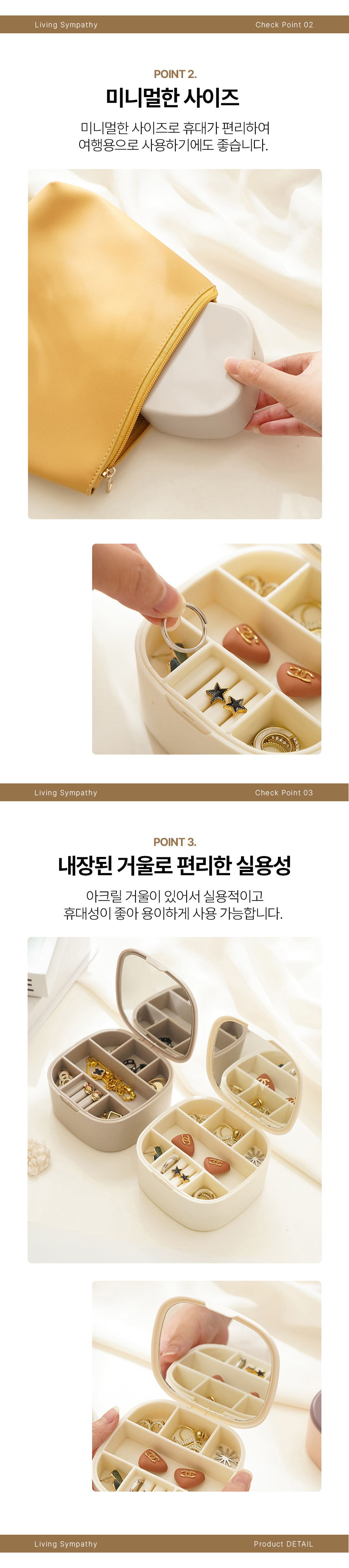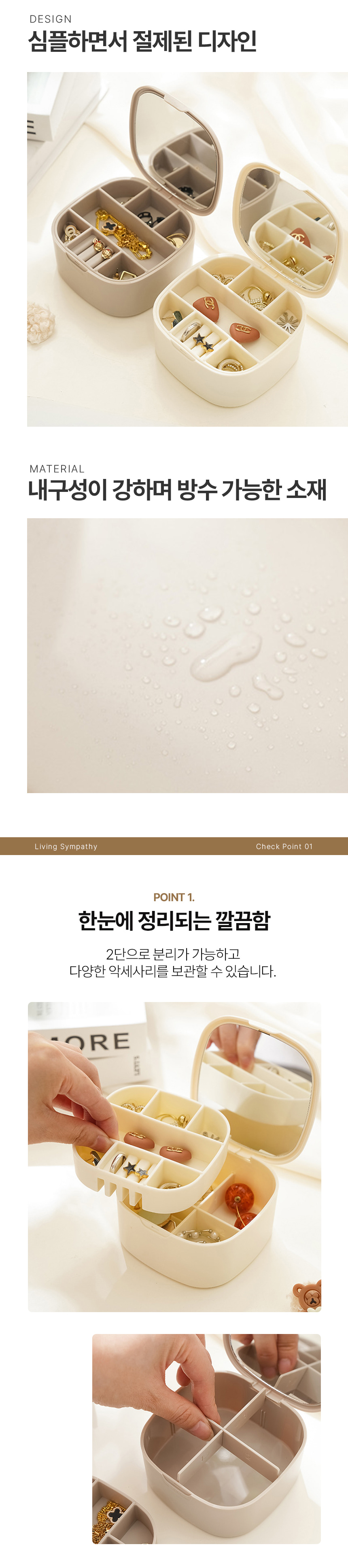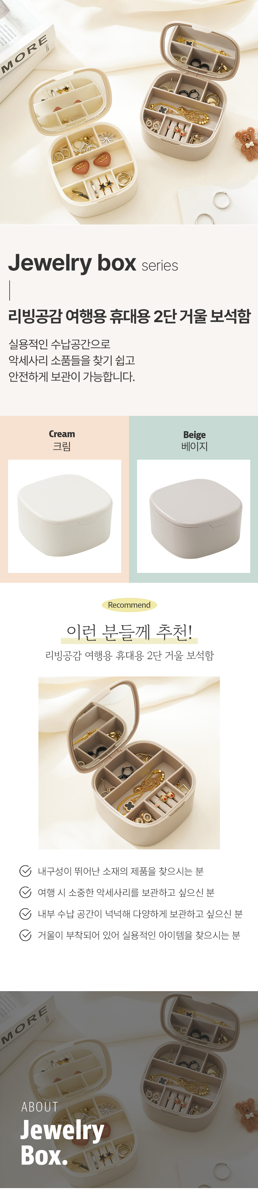 깔끔 여행용 휴대용 2단 거울 보석함