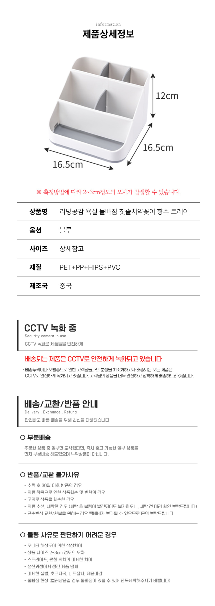 깔끔 욕실 물빠짐 칫솔치약꽂이 화장품정리함 향수 트레이