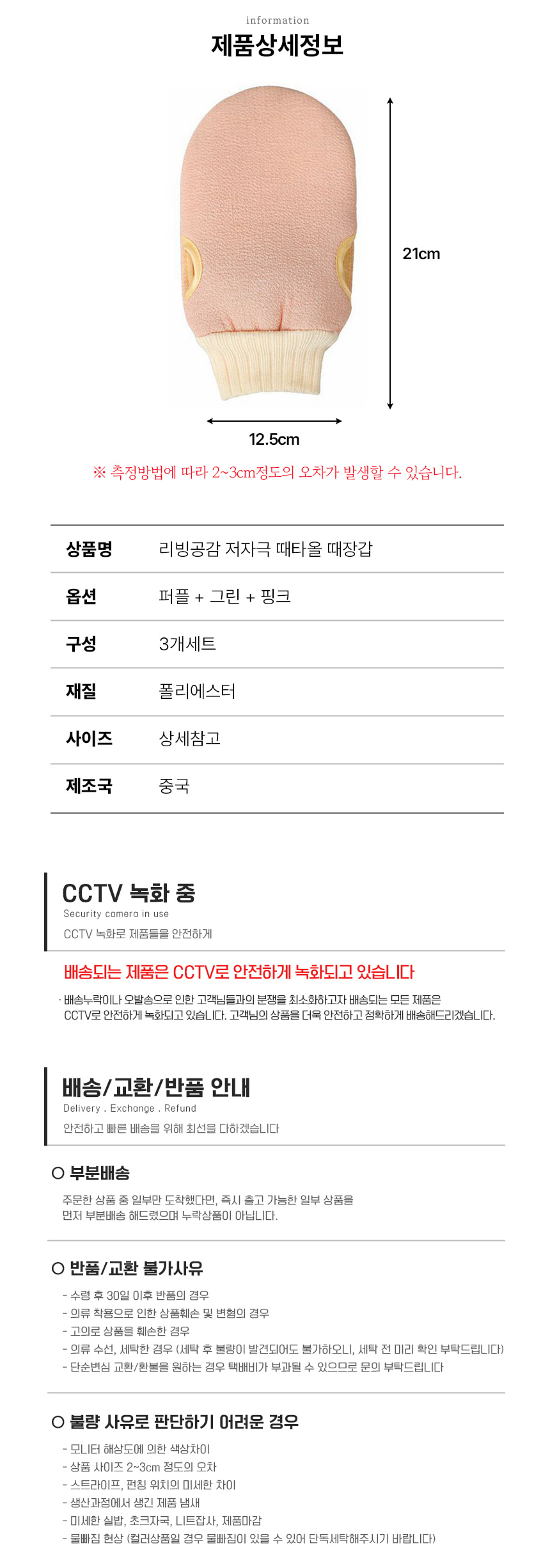 깔끔한 저자극 때타올 때장갑