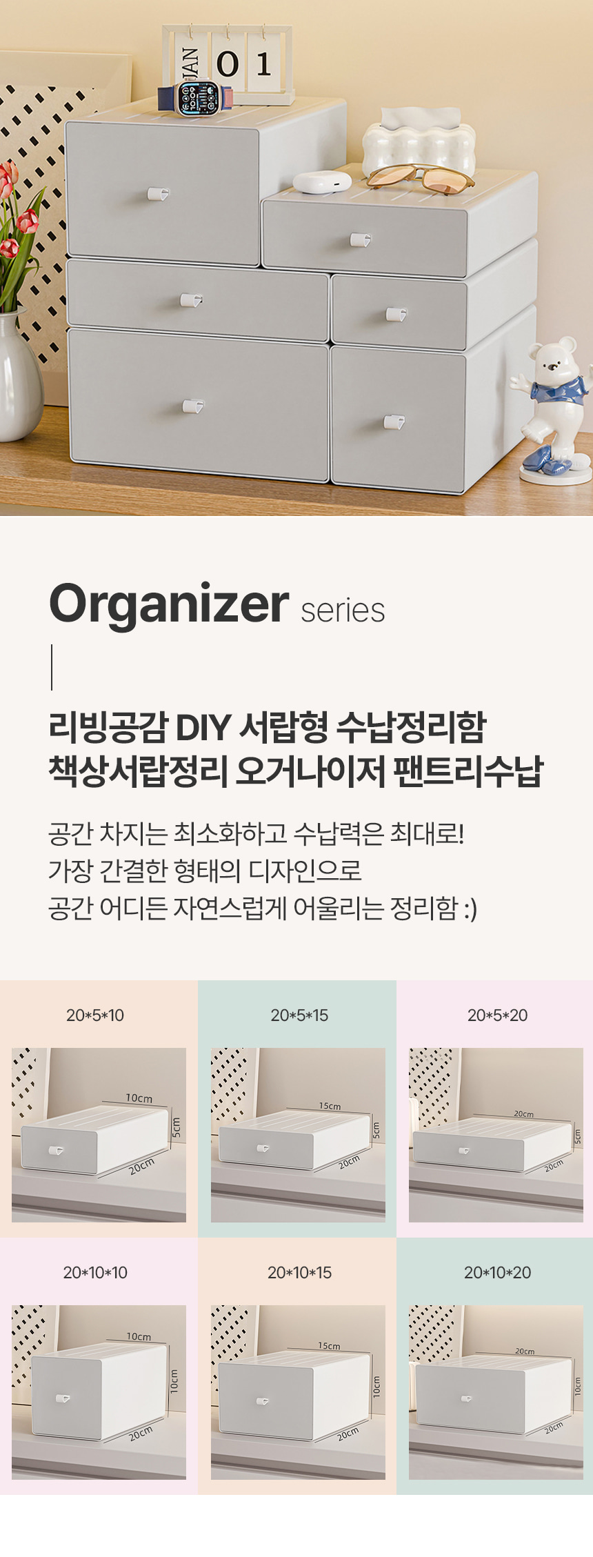 깔끔한 DIY 서랍형 수납정리함 책상서랍정리 오거나이저 팬트리수납함