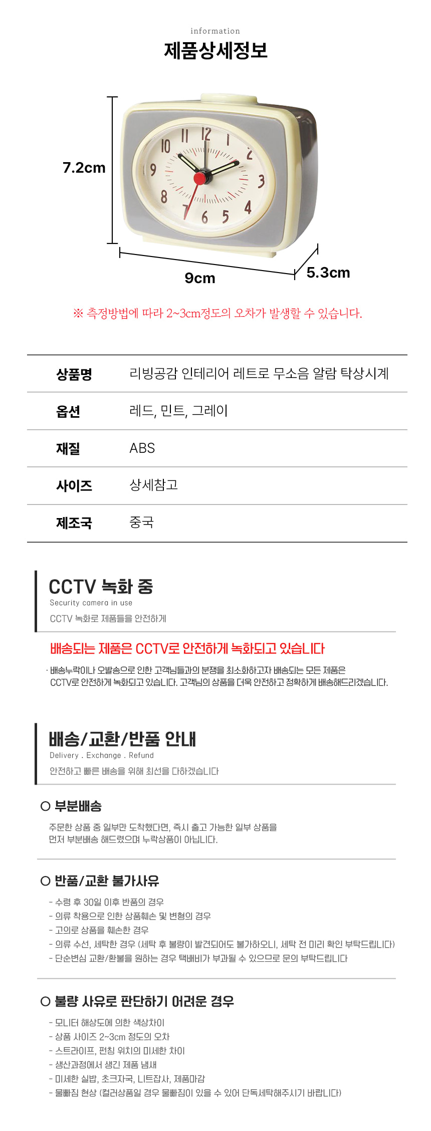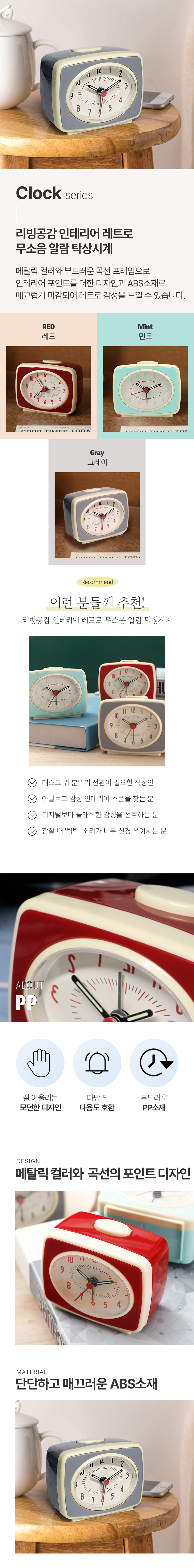 깔끔한 인테리어 레트로 무소음 알람 탁상시계