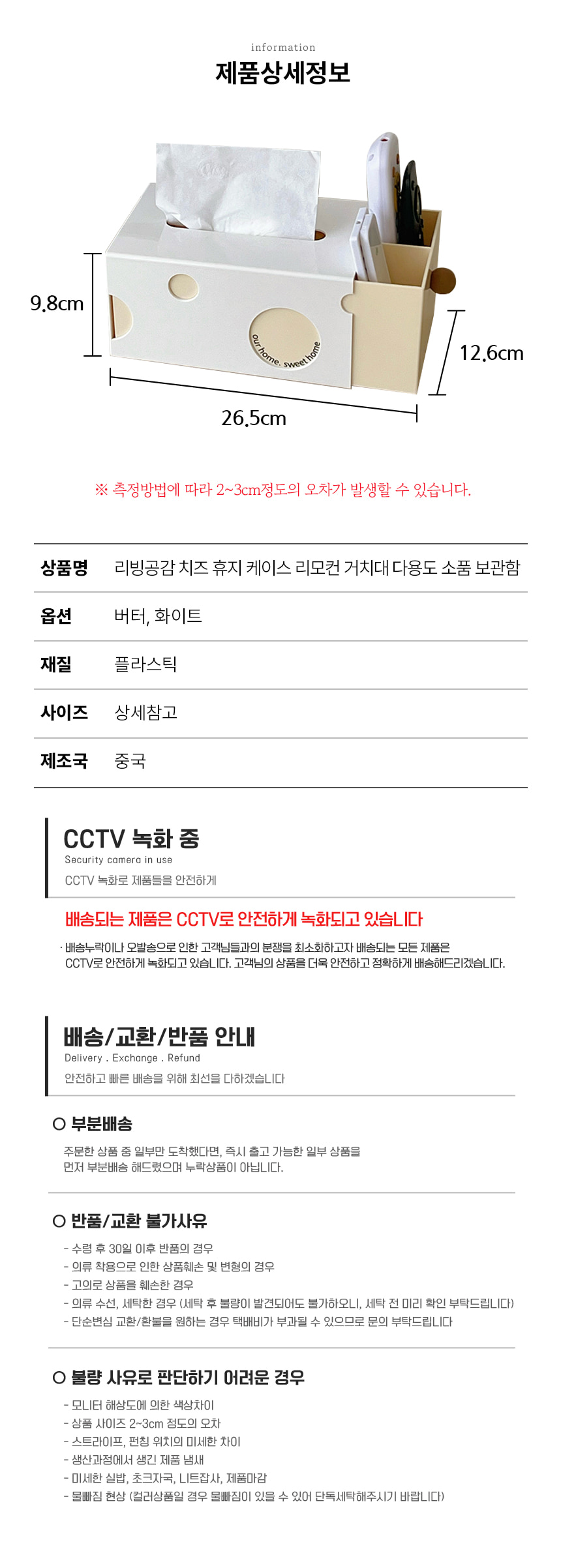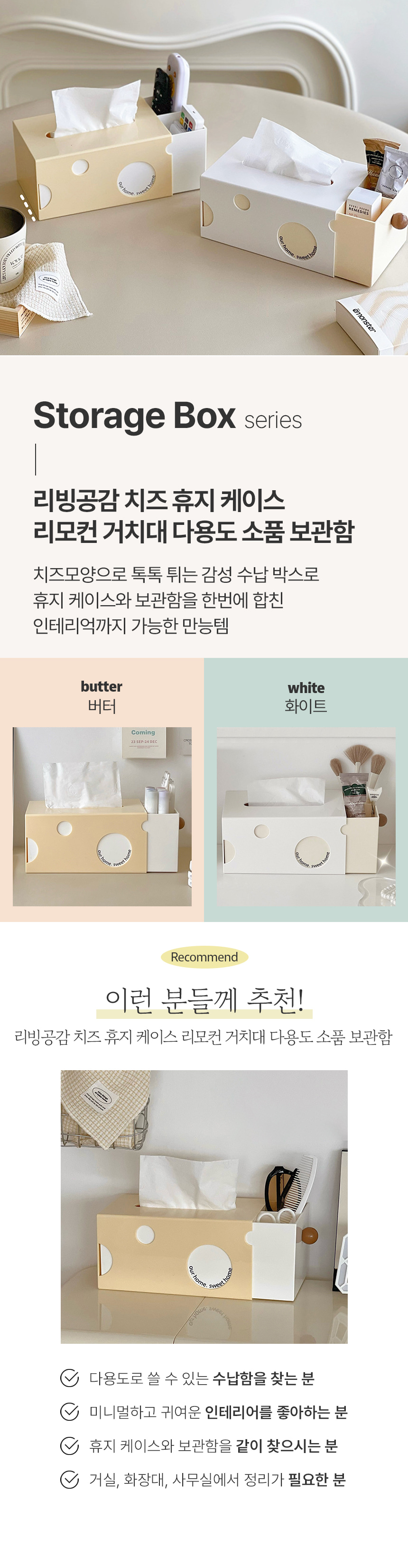 깔끔한 치즈 휴지 케이스 리모컨 거치대 다용도 소품 보관함