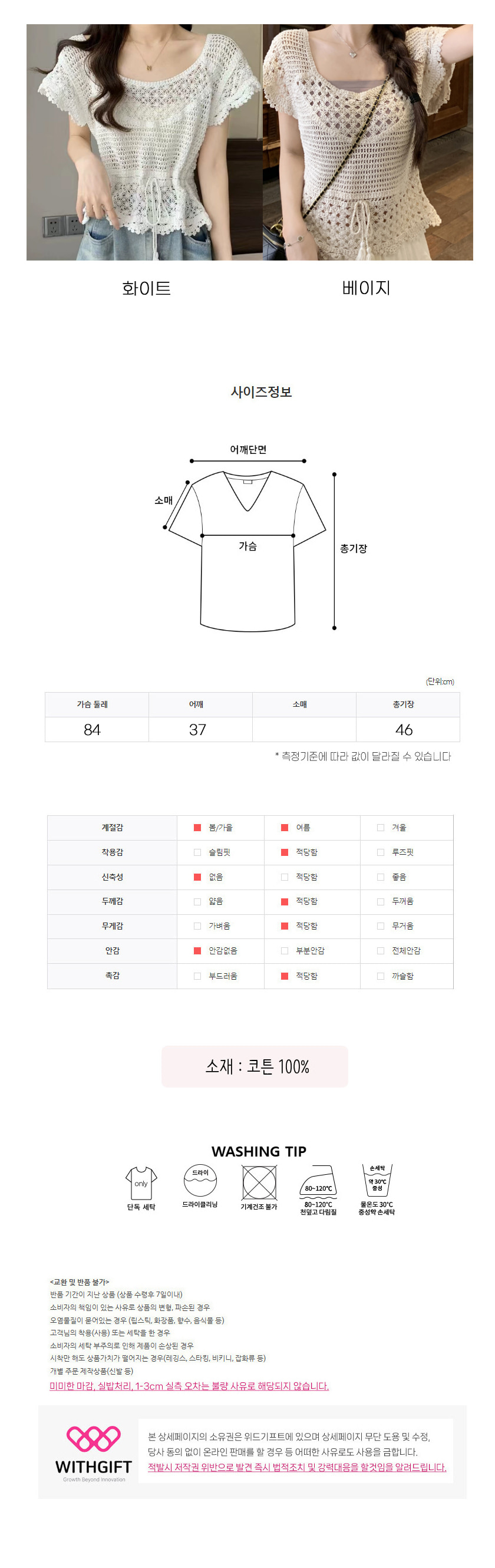 세탁방법 및 취급시 주의사항